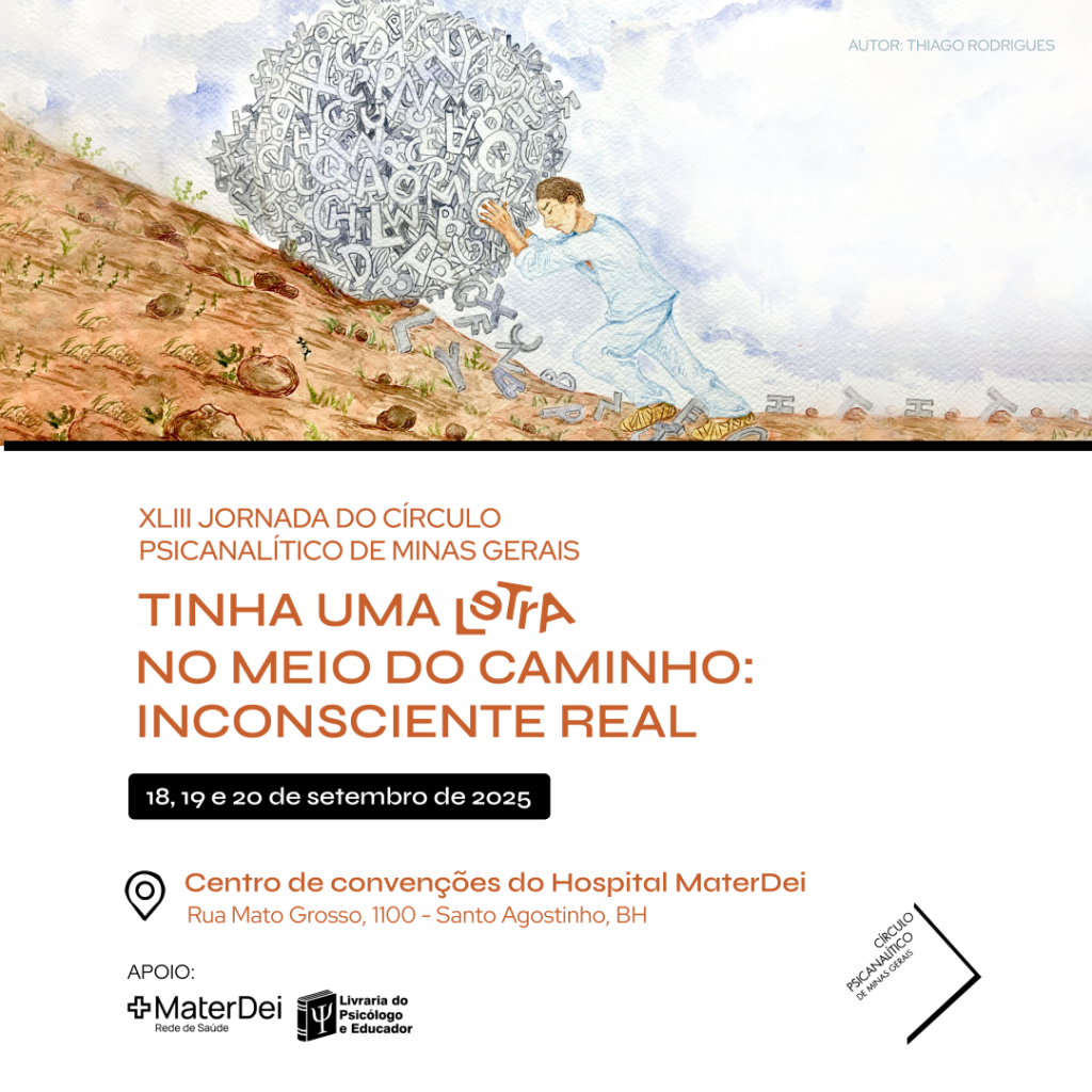 Trata-se, portanto, de um itinerário que vai da centralidade do simbólico à prevalência do real, e é para esse ponto de chegada e suas consequências teórico-clínicas que se voltará nossa atenção nos debates desta XLIII Jornada do Círculo Psicanalítico de Minas Gerais. Contamos com sua presença e sua participação.